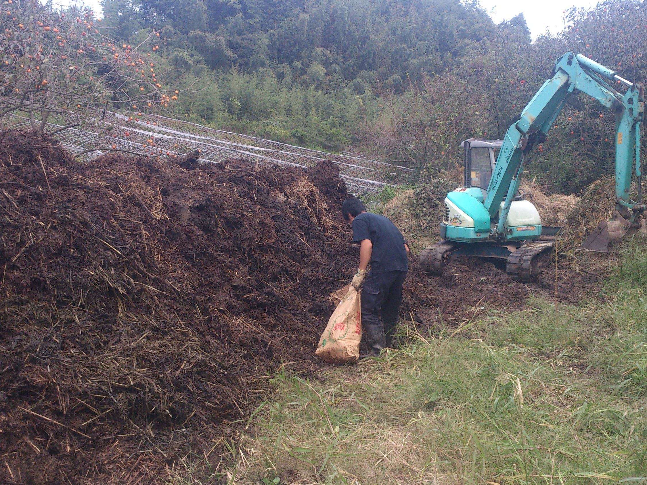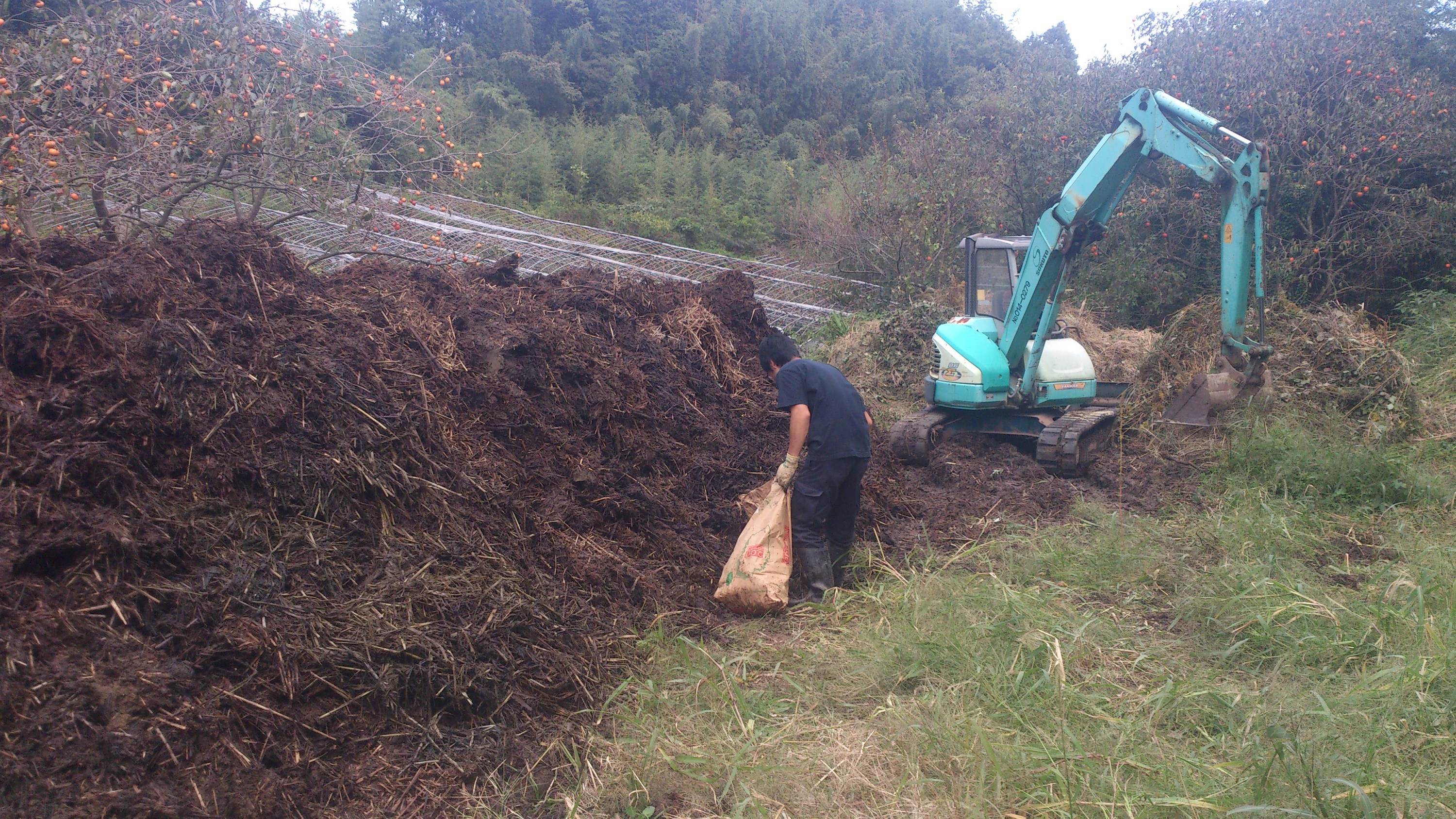 一年かけて作った堆肥を撒きます。