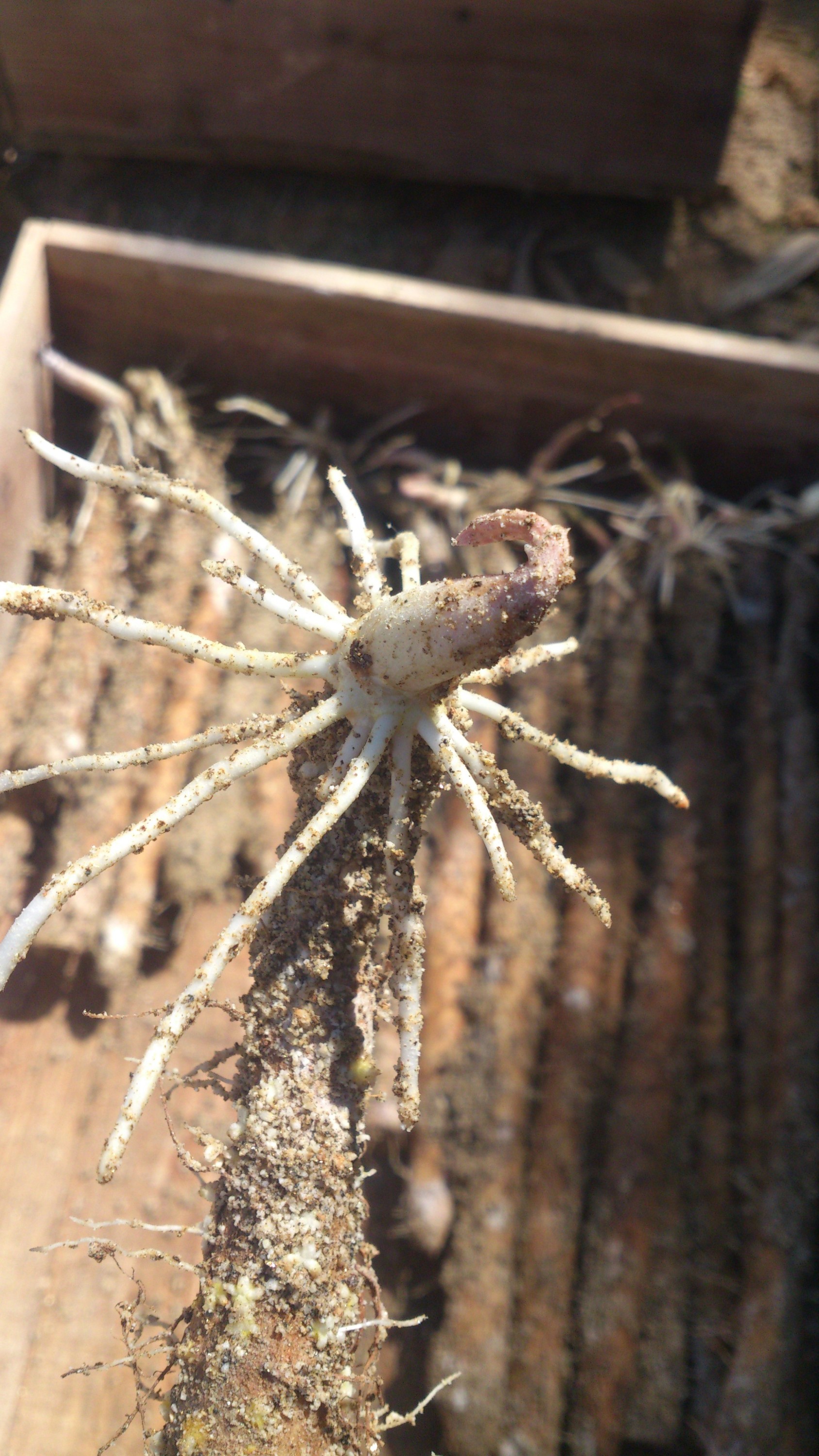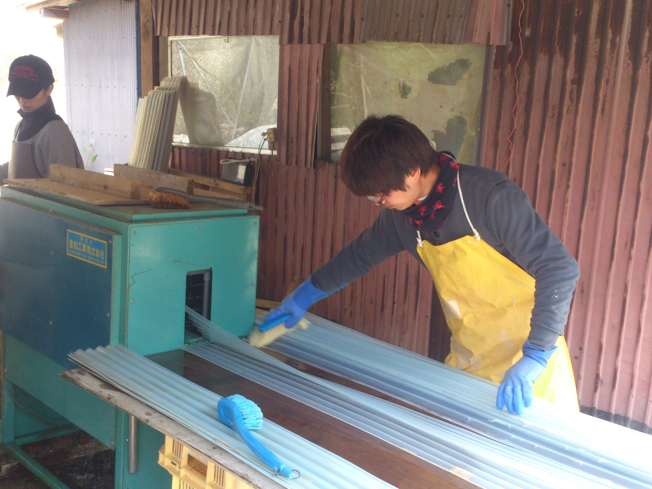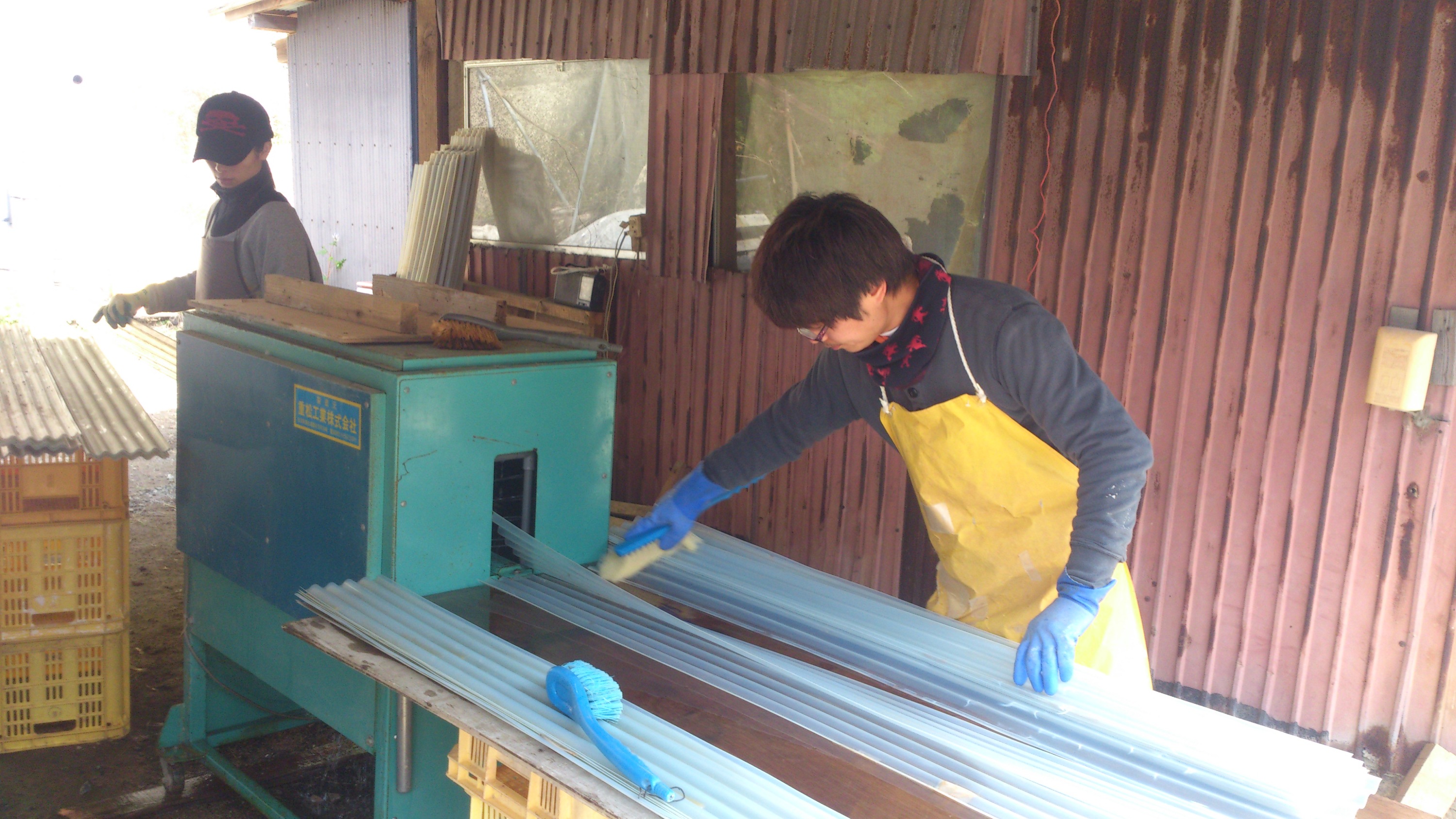 山芋が育つ容器は、毎年洗浄しています。冬の一番寒い時期ですが、自然薯が病気にならないように、きれいに洗浄します。