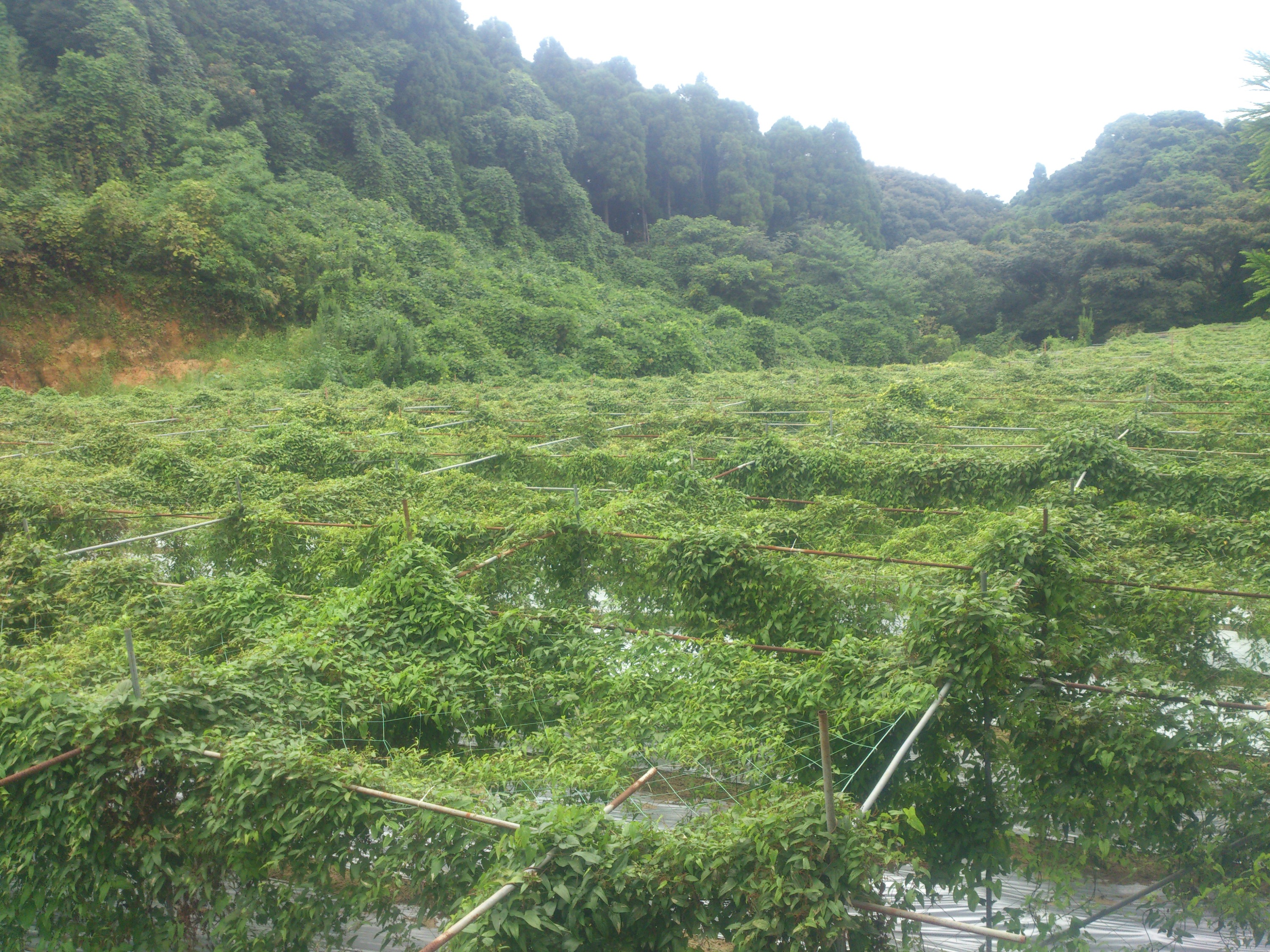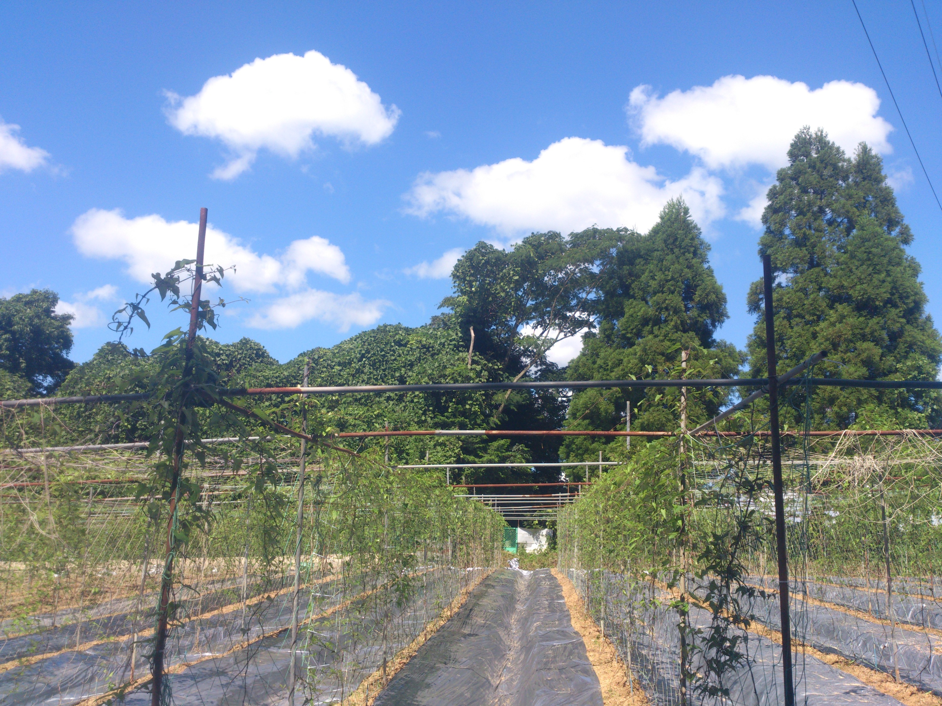 真夏の自然薯畑です。太陽の光を浴びて、まさに大地の力を蓄えているところです。大きくなーれ!!