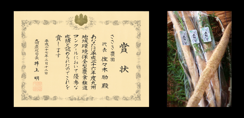 平成24年には、10年前から主力商品にしたいと考えていた自然薯についても、保存中や定植後の腐敗を克服できたことから、全量完全無農薬、無化学肥料栽培での出荷率90%以上、1t/10aの収量をあげることに成功し、全国に販路が広がりつつあります。